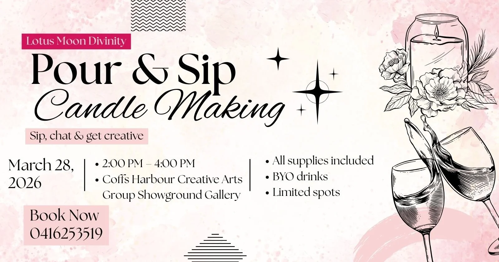 Come and join me for a creative, hands-on evening where you’ll make your very own candles while enjoying a relaxed, social atmosphere.